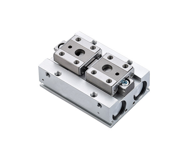 平行夾爪的手指是通過兩個活塞動(dòng)作的。每一活塞由一(yī)個滾輪(lún)和(hé)一個雙曲柄與氣動手指相連,形成一個特殊的驅動單(dān)元。這樣,氣動手指總是軸向對心移動(dòng),每個手指是不能單獨移動(dòng)的。如是手指反向移動,則先前受壓的活塞(sāi)處於排氣狀態,而另一個活(huó)塞(sāi)處於(yú)受壓狀態。