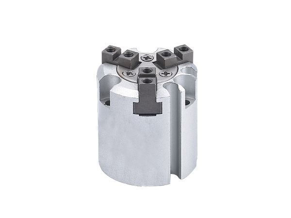 三點(diǎn)夾爪的活塞上有一個環形槽,每一個曲柄與一個氣(qì)動手指相連,活塞運動能馬驅動三個曲柄動作,因而可控製三個手指(zhǐ)同時打開和合攏 [3] 。